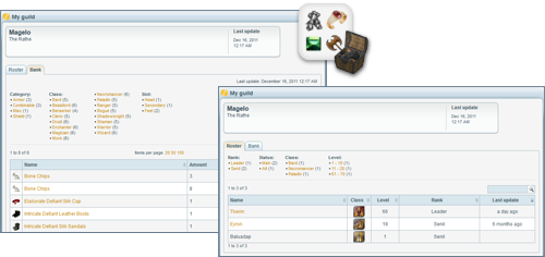 To add your bank in your guild page, you just need to sync your character once you have viewed your guild bank. In your guild page, you will be able to sort the content of your bank by category (item category, class, slot).
