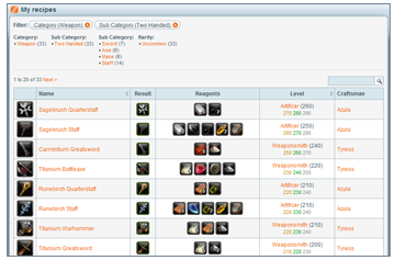 You can now browse the recipes known by all your characters in the new My recipes page. This feature is accessible also from your guild page, but concerns all the members of your guild. Here, you can focus on your characters only, guilded or not!