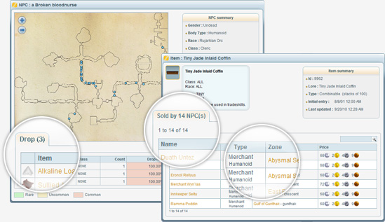 The item and NPC pages just received some upgrades! Whenever you check a specific item or NPC, you can see additional tabs with detailed related information.