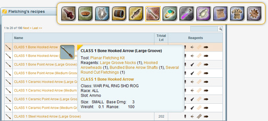 Just like a cook book, check out all the recipes you can do per Tradeskill in a brand new page added in the Database section of the site! Any recipe will detail the reagents and the required tool needed to produce the item. You will also know the level at which it becomes trivial to make it.